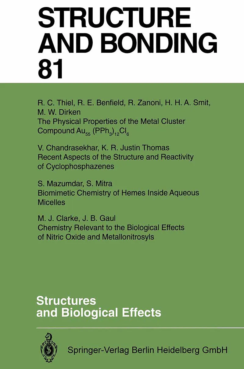 Inhalt The physical properties of the metal cluster compound Au55(PPh3)12Cl6.- Recent aspects of the structure and reactivity of cyclophosphazenes.- Biomimetic chemistry of hemes inside aqueous micelles.- Chemistry relevant to the biological effects of nitric ...