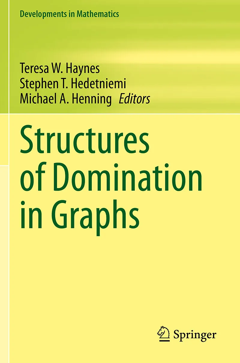 Teresa W. Haynes has focused her research on domination in graphs for over 30 years and is perhaps best known for coauthoring the 1998 book Fundamentals of Domination in Graphs and the companion volume Domination in Graphs: Advanced Topics. She has also co-edited 2 volumes in Springer's Problem Books in Mathematics Graph Theory: Favorite Conjectures and Open Problems. Haynes is also a co-author of the Springer Briefs in Mathematics From Domination to Coloring: The Graph Theory of Stephen T. Hedetniemi. Upon receiving her PhD from the University of Central Florida in 1988, she joined East Tennessee State University, where she is currently professor in the Department of Mathematics and Statistics. Haynes has coauthored more than 200 papers on domination and domination-related concepts, which introduced some of the most studied concepts in domination, such as power domination, paired domination, double domination, alliances and broadcasts in graphs, and stratified domination. Stephen T. Hedetniemi is one of the earliest pioneers of domination in graphs along with E. J. Cockayne, who together proposed the theory of domination in graphs, in one of the most cited papers in the field in 1977. He received his PhD from the University of Michigan in 1966, with two world-class advisors, graph theorist Frank Harary, and the pioneer of genetic algorithms and MacArthur Fellowship winner, John Holland. He coauthored, the first book on domination in 1988 Fundamentals of Domination in Graphs, and co-edited a second book, Domination in Graphs: Advanced Topics. He also co-edited 2 volumes in Springer's Problem Books in Mathematics Graph Theory: Favorite Conjectures and Open Problems. Since 1974 he has coauthored more than 300 papers, 180 of which are on domination and domination-related concepts. Hedetniemi has introduced some of the most-studied concepts in domination theory, including total domination, independent domination, irredundance, Roman domination, power domination, alliances in graphs, signed and minus domination, fractional domination, domatic numbers, domination in grid graphs and chessboards, the first domination algorithms, the first domination NP-completeness results, and the first self-stabilizing domination algorithms. After leaving the University of Michigan, he taught computer science at the University of Iowa, and the University of Virginia, spent a visiting year at the University of Victoria with E. J. Cockayne, and then became department head of Computer and information Science at the University of Oregon. Since 1982 has been at Clemson University, where he served a five-year term as department head, and served on the Executive Committee of the Computing Accreditation Commission of ABET, Inc. He is currently Emeritus Professor of Computer Science in the School of Computing at Clemson University. Michael A. Henning has devoted much of his research interests to the field of domination theory in graphs. He has been both plenary and invited speakers at several international conferences and is a prolific researcher having published over 460 papers to date in international mathematics journals. Henning was born and schooled in South Africa having obtained his PhD at the University of Natal in April 1989. In January 1989, he started his academic career as a lecturer at the University of Zululand, before accepting a lectureship in mathematics at the former University of Natal in January 1991. In January 2000, he was appointed a full professor at the University of Natal, which later merged with the University of Durban-Westville to form the University of KwaZulu-Natal in January 2004. After spending almost 20 years at the University of KwaZulu-Natal and one of its predecessors, the University of Natal, Michael moved to the University of Johannesburg in May 2010 as a research professor. He co-authored a Springer Briefs in Mathematics From Domination to Coloring: The Graph Theory of Stephen T. Hedetniemi and co-authored the Springer Monographs in Mathematics book Total Domination in Graphs and in 2020, he co-authored Springer's Developments in Mathematics book Transversals in Linear Uniform Hypergraphs.