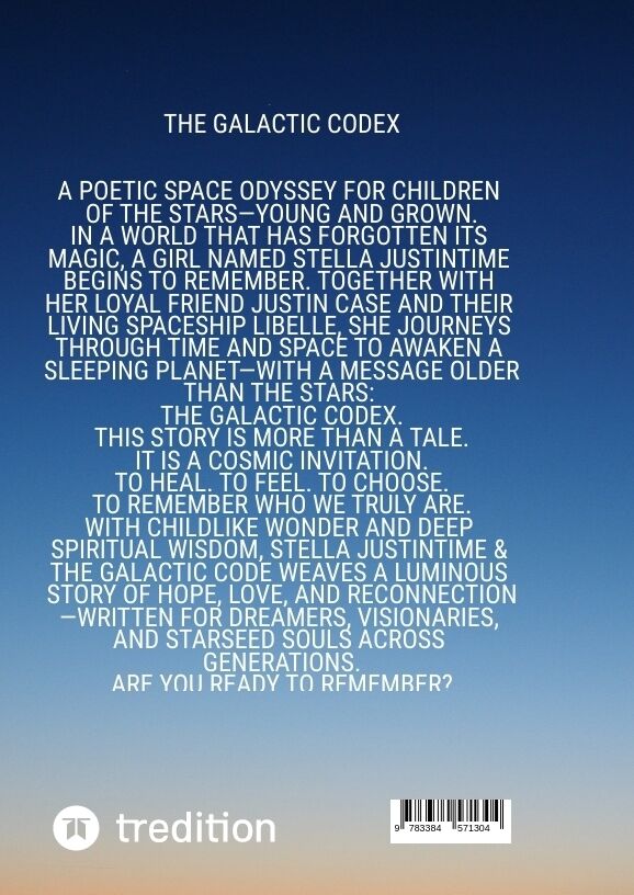 Stella Justintime & The Galactic Codex is a poetic and visionary adventure that blends spirituality, science fiction, and soul-deep storytelling. It follows Stella, a luminous girl with a big heart, and her companion Justin Case as they travel through spac...