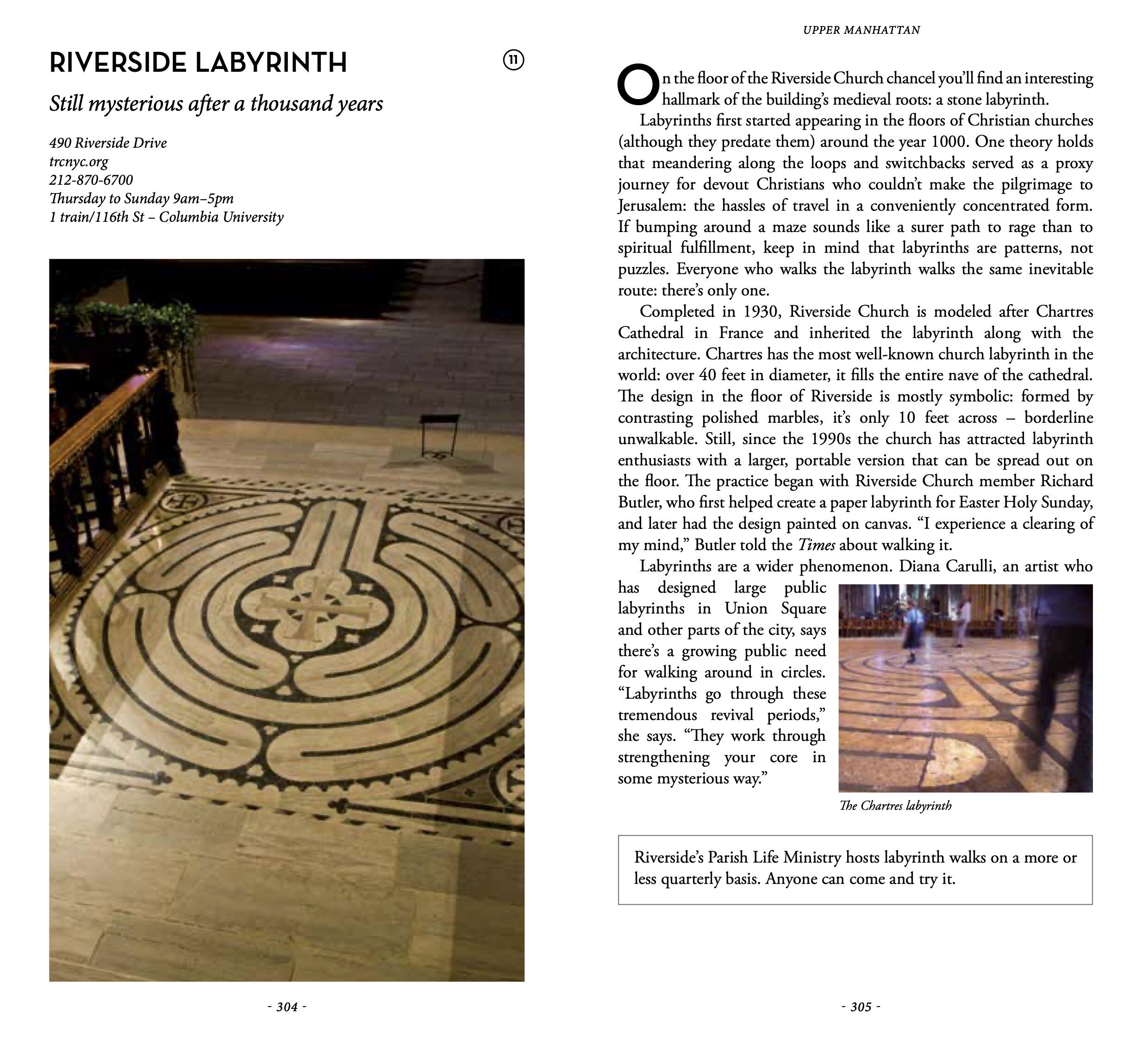 Admire an apocalyptic pillar in a church, relax in secret gardens, discover the New York version of the Sagrada Familia, visit a secret metro tunnel,contemplate an elephant electrocuted, find bullet impacts outside the Bank JP Morgan, observe the stars with a ...