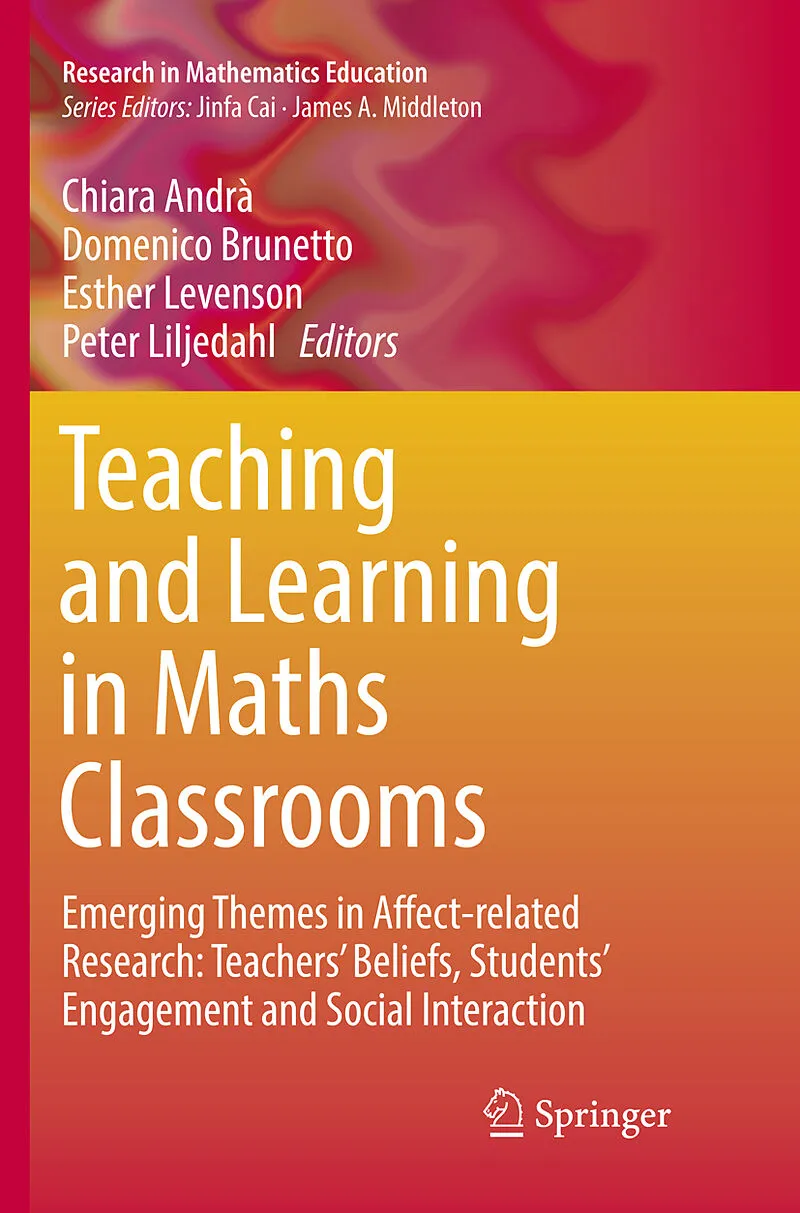 1 Teaching and learning in math classrooms.- 2 Foreword.- 3 Introduction.- Part I Classroom practices: explanation, problem-solving, patterning, decision-making, drawings and games 4 Prospective primary teachers' beliefs regarding the roles of explanations in the classroom.- 5 Defining, drawing, and continuing repeating patterns: Preschool teachers' self-efficacy and knowledge. - 6 Primary school students' images of problem solving in mathematics.- 7 Secondary school mathematics teachers' conceptions on data-based decision-making: Insights from four Japanese cases.- 8 Teachers' activities during a mathematics lesson as seen in third graders' drawings- 9 Serious frivolity: exploring play in UK secondary mathematics classrooms.- Part II Teachers' beliefs, changing beliefs and the role of the environment.- 10 In-service math teachers' autobiographical narratives: the role of metaphors.- 11 A contribution to the relation between teachers' professed and enacted beliefs.- 12 Raising attainment: What might we learn from teachers' beliefs about their best and worst mathematics students?.- 13 Numeracy task design: A case of changing mathematics teaching practice.- 14 Math lessons: from flipped to amalgamated, from teacher- to learner-centered.- 15 Emotional expressions as a window to processes of change in a mathematics classroom's culture.- 16 Mathematics teachers' conceptions of the classroom environment.- Part III Understanding the undercurrents: tensions, inconsistencies and the social turn.- 17 Teacher tensions: the case of Naomi.- 18 Towards inconsistencies of parents' beliefs about teaching and learning mathematics.- 19 Evoking the feeling of uncertainty for enhancing conceptual knowledge.- 20 Criteria for identifying students as exceptional in a mathematical camp for 'gifted' students.- 21 Identity and rationality in classroom discussion: developing and testing an analytical toolkit.- 22 Developing an analyzing tool for dynamic mathematics-related student interaction regarding affect, cognition and participation.- Part IV Emerging themes in affect-related research: engagement, fear, perfectionism ...and assessment.- 23 Motivating desires for classroom engagement in the learning of mathematics.- 24 What are students afraid of when they say they are afraid of mathematics?.- 25 What is perfectionism in mathematical task solving?.- 26 Gender differences concerning pupils' beliefs on teaching methods and mathematical worldviews at lower secondary schools.- 27 Every time I fell down (made a mistake), I could get up (correct): affective factors in formative assessment practices with classroom connected technologies.- 28 Teachers' affect towards the external standardised assessment of students' mathematical competencies.- 29 Conclusion.