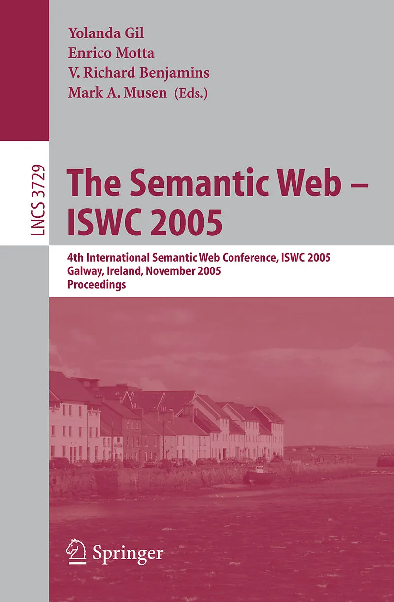 Invited Paper.- Using the Semantic Web for e-Science: Inspiration, Incubation, Irritation.- Semantic Acceleration Helping Realize the Semantic Web Vision or The Practical Web.- Semantic Web Public Policy Challenges: Privacy, Provenance, Property and Personhood.- Research/Academic Track.- Constructing Complex Semantic Mappings Between XML Data and Ontologies.- Stable Model Theory for Extended RDF Ontologies.- Towards a Formal Verification of OWL-S Process Models.- Web Service Composition with Volatile Information.- A Large Scale Taxonomy Mapping Evaluation.- RDF Entailment as a Graph Homomorphism.- RitroveRAI: A Web Application for Semantic Indexing and Hyperlinking of Multimedia News.- Querying Ontologies: A Controlled English Interface for End-Users.- Semantic Browsing of Digital Collections.- Decentralized Case-Based Reasoning for the Semantic Web.- Finding and Ranking Knowledge on the Semantic Web.- Choreography in IRS-III Coping with Heterogeneous Interaction Patterns in Web Services.- Bootstrapping Ontology Alignment Methods with APFEL.- A Strategy for Automated Meaning Negotiation in Distributed Information Retrieval.- On Applying the AGM Theory to DLs and OWL.- A General Diagnosis Method for Ontologies.- Graph-Based Inferences in a Semantic Web Server for the Cartography of Competencies in a Telecom Valley.- Ontology Design Patterns for Semantic Web Content.- Guidelines for Benchmarking the Performance of Ontology Management APIs.- Semantically Rich Recommendations in Social Networks for Sharing, Exchanging and Ranking Semantic Context.- On Partial Encryption of RDF-Graphs.- Seven Bottlenecks to Workflow Reuse and Repurposing.- On Logical Consequence for Collections of OWL Documents.- A Framework for Handling Inconsistency in Changing Ontologies.-Preferential Reasoning on a Web of Trust.- Resolution-Based Approximate Reasoning for OWL DL.- Reasoning with Multi-version Ontologies: A Temporal Logic Approach.- Piggy Bank: Experience the Semantic Web Inside Your Web Browser.- BRAHMS: A WorkBench RDF Store and High Performance Memory System for Semantic Association Discovery.- A Template-Based Markup Tool for Semantic Web Content.- Representing Web Service Policies in OWL-DL.- Information Modeling for End to End Composition of Semantic Web Services.- Searching Dynamic Communities with Personal Indexes.- RUL: A Declarative Update Language for RDF.- Ontologies Are Us: A Unified Model of Social Networks and Semantics.- OMEN: A Probabilistic Ontology Mapping Tool.- On the Properties of Metamodeling in OWL.- A Bayesian Network Approach to Ontology Mapping.- Ontology Change Detection Using a Version Log.- RelExt: A Tool for Relation Extraction from Text in Ontology Extension.- Containment and Minimization of RDF/S Query Patterns.- A String Metric for Ontology Alignment.- An Ontological Framework for Dynamic Coordination.- Introducing Autonomic Behaviour in Semantic Web Agents.- Combining RDF and Part of OWL with Rules: Semantics, Decidability, Complexity.- Benchmarking Database Representations of RDF/S Stores.- Towards Imaging Large-Scale Ontologies for Quick Understanding and Analysis.- Automatic Evaluation of Ontologies (AEON).- A Method to Combine Linguistic Ontology-Mapping Techniques.- Debugging OWL-DL Ontologies: A Heuristic Approach.- Rapid Benchmarking for Semantic Web Knowledge Base Systems.- Using Triples for Implementation: The Triple20 Ontology-Manipulation Tool.- A Little Semantic Web Goes a Long Way in Biology.- Provenance-Based Validation of E-Science Experiments.- Industrial Track.- Semantic Service Integration for Water Resource Management.- Towards a Killer App for the Semantic Web.- Enterprise Architecture Reference Modeling in OWL/RDF.- MediaCaddy Semantic Web Based On-Demand Content Navigation System for Entertainment.- LKMS A Legal Knowledge Management System Exploiting Semantic Web Technologies.- Definitions Management: A Semantics-Based Approach for Clinical Documentation in Healthcare Delivery.- Ubiquitous Service Finder Discovery of Services Semantically Derived from Metadata in Ubiquitous Computing.- Ontological Approach to Generating Personalized User Interfaces for Web Services.- On Identifying Knowledge Processing Requirements.- An Application of Semantic Web Technologies to Situation Awareness.- Task Knowledge Based Retrieval for Service Relevant to Mobile User's Activity.- Supporting Rule System Interoperability on the Semantic Web with SWRL.- Automated Business-to-Business Integration of a Logistics Supply Chain Using Semantic Web Services Technology.- A Semantic Search Engine for the International Relation Sector.- Gnowsis Adapter Framework: Treating Structured Data Sources as Virtual RDF Graphs.- Do Not Use This Gear with a Switching Lever! Automotive Industry Experience with Semantic Guides.- The Concept Object Web for Knowledge Management.- Semantic Web Challenge.- The Personal Publication Reader.- DynamicView: Distribution, Evolution and Visualization of Research Areas in Computer Science.- Oyster Sharing and Re-using Ontologies in a Peer-to-Peer Community.- The FungalWeb Ontology: Semantic Web Challenges in Bioinformatics and Genomics.- CONFOTO: A Semantic Browsing and Annotation Service for Conference Photos.