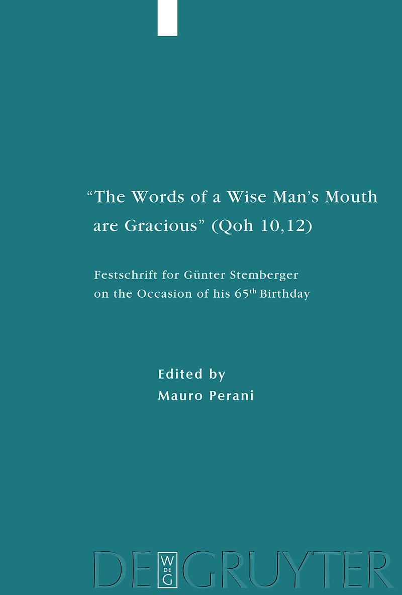 Mauro Perani: Foreword; Kurt Schubert and Fritz Werner: Preface; Peter Schäfer: A Brief Survey of Günter Stemberger's Scholarly Work;The Bibliography of Günter Stemberger (1972-2005); Christoph Dohmen: Grenzen der Interpretation für die von Gott zur Auslegung gegebene Torah? Chaim Milikowsky: Rabbinic Interpretation of the Bible in the Light of Ancient Hermeneutical Practice; Armin Lange: Authoritative Literature and Scripture in the Chronistic Corpus; Daniel Boyarin: The Parables of Enoch and the Foundation of the Rabbinic Sect: A Hypothesis; Marc Philonenko: Sur les expressions élus de vérité, élus de justice et Elu de justice et de fidélité. Contribution à l'étude du sociolecte essénoqoumrânien; Jacob Neusner: How important was the Destruction of the Second Temple in the Formation of Rabbinic Judaism? Aryeh Kasher: Josephus in Praise of Mosaic Laws on Marriage (Contra Apionem, II, 199201); Jonathan J. Price: Some Aspects of Josephus' Theological Interpretation of the Jewish War; Lucio Troiani: Strabone e la cosiddetta riforma ellenistica; Corrado Martone: Verso un'edizione italiana dell'archivio di Babatha. Il Papiro Yadin 1: testo e traduzione; Piero Capelli: The Outer and the Inner Devil. On Representing the Evil One in Second Temple Judaism; Werner Eck Ehret den Kaiser. Bögen und Tore als Ehrenmonumente in der Provinz Iudaea; Miriam Pucci Ben Zeev: Were the Jews Accused of Roasting their Enemies? Aharon Oppenheimer: The Severan Emperors, Rabbi Judah ha-Nasi and the Cities of Palestine; Miguel Pérez Fernández: Sobre las funciones de la partícula e- en Hebreo Misnaico; Lee I. Levine: Bet e'arim in Its Patriarchal Context; Olga Ruiz-Morell: Elementos singulares en Tosefta Sabbat; Guiseppe Veltri: Magic, Sex and Politics: The Media Power of Theatre Amusements in the Mirror of Rabbinic Literature; David M. Goldenberg: What Did Ham Do to Noah? Catherine Hezser: Towards the Study of Jewish Popular Culture in Roman Palestine; Carlos Del Valle Rodríguez: Los primeros contactos de la Iglesia con el Talmud. El significado de la deuterosis; Luis F. Girón Blanc: Midra Qohelet: Un fragmento de la Genizahde El Cairo; Gottfried Reeg: Die Ursache für die Bindung Isaaks: Wie lasen die Rabbinen die Bibel? Johann Maier: Berechtigung und Grenzen der Notwehr und Selbstverteidigung im jüdischen Recht; Ursula Ragacs: Hoffnung für die Zukunft: Feststellungen und Spekulationen zum jüdischen Verständnis von Dtn 30,3; Mauro Perani: Yosef Ben imón Kara's Lost Commentary on the Psalms: The Imola Fragment from the Italian Genizah; Saverio Campanini: Talmud, Philosophy, and Kabbalah: A Passage from Pico della Mirandola's Apologia and its source; Michael Krupp: Der Anfang der isronot ha-Schass - Literatur: Christliche Talmudzensur und ihre jüdische Überwindung; Kurt Schubert: Zionismus und jüdische Identität; Peter Schäfer: Judaistik und ihr Ort in der universitas litterarum heute: Einige Überlegungen zum Fach Judaistik in Deutschland