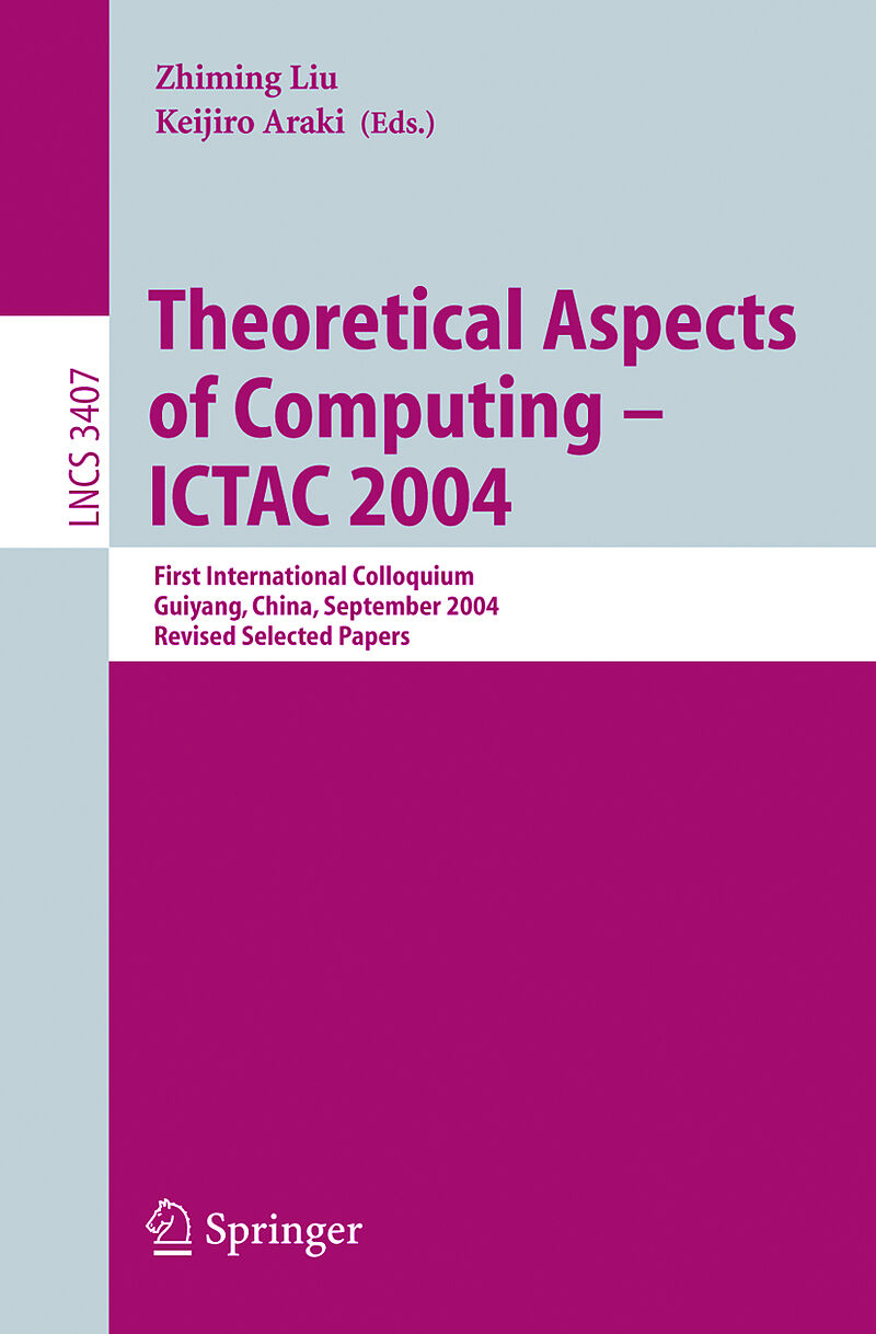 This volume contains the proceedings of ICTAC 2004, the 1st International Colloquium on Theoretical Aspects of Computing, which was held in Guiyang, China on 20 24 September 2004. ICTAC was founded by the International Institute for Software Technology of the ...This volume contains the proceedings of ICTAC 2004, the 1st International Colloquium on Theoretical Aspects of Computing, which was held in Guiyang, China on 20 24 September 2004. ICTAC was founded by the International Institute for Software Technology of the United Nations University (UNU-IIST). Its aim is to bring together pr- titioners and researchers from academia, industry, and government to present research results, and exchange experience, ideas, and solutions for their pr- lems in theoretical aspects of computing. The geographic focus of the ICTAC events is on developing countries to help to strengthen them in their research, teaching, and development in computer science and engineering, to encourage research cooperation among developing countries, and to improve the links - tween developing countries and industrial countries. The Program Committee of ICTAC 2004 received 111 submissions from over 30 countries and regions. Each paper was reviewed, mostly by at least three r- ereesworkinginrelevant?elds,butbytwoinafewcases.Borderlinepaperswere further discussed during an online meeting of the Program Committee. Thir- fourpaperswereacceptedbasedonoriginality,technicalsoundness,presentation andrelevancetosoftwareengineeringandformalmethods.Wesincerelythankall the authors who submitted their work for consideration. We thank the Program Committee members and the other referees for their great e?ort and professional workinthereviewingandselectingprocess.Theirnamesarelistedonthefoll- ing pages. In addition to the contributed papers, the proceedings also includes contributions from the invited speakers: Jos e Luiz Fiadeiro, He Jifeng, Huimin Lin and Rustan Leino.
