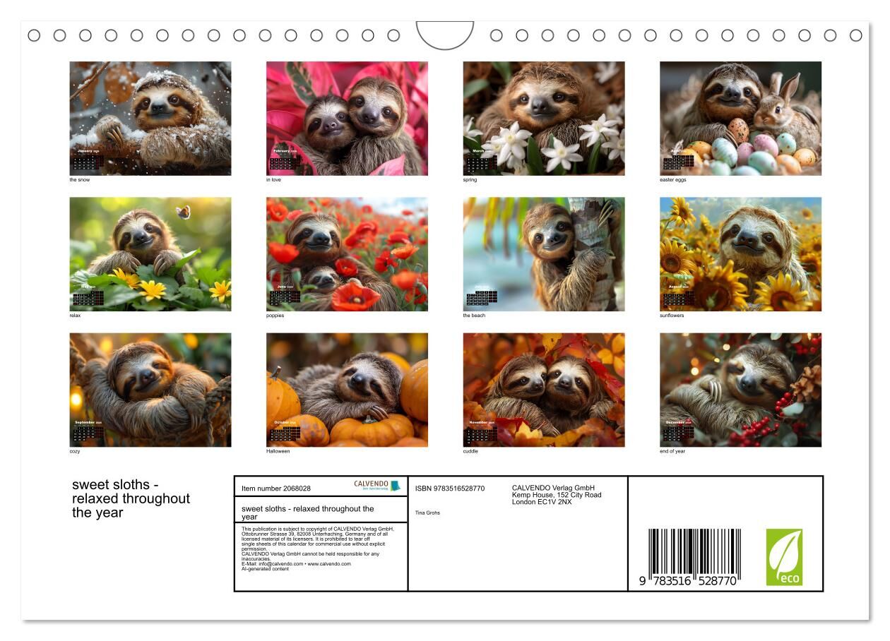 Transform your daily routine with the "sweet sloths" wall calendar. Each month features stunning, AI-generated images of adorable sloths in lush, natural habitats, capturing moments of pure calm and contentment. These vibrant scenes are crafted to provide a vi...