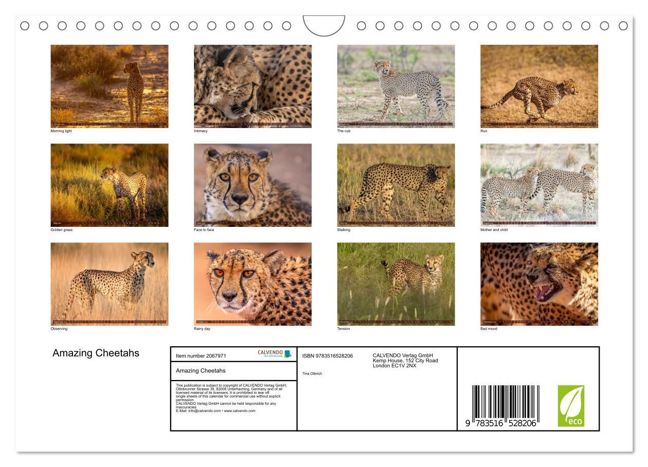 Experience the untamed elegance of southern Africa with this photo calendar. Each month features stunning, high-quality images of wild cheetahs captured in their natural habitat, showcasing their grace, speed and beauty. These breathtaking photos bring the vib...