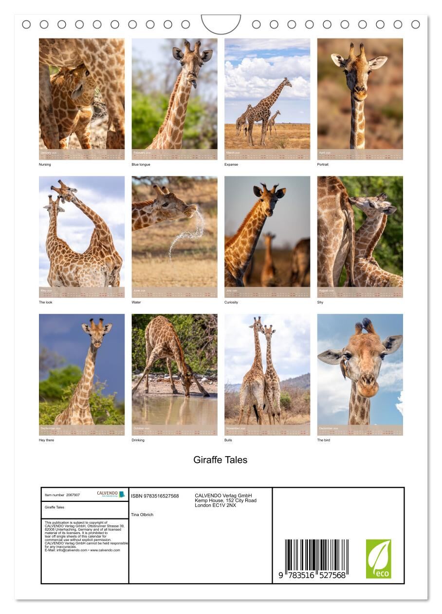 Discover the enchanting world of giraffes with this exclusive photo calendar. It brings you up close and personal with these majestic creatures every month. Each page features stunning, high-quality images capturing the elegance and beauty of giraffes in their...