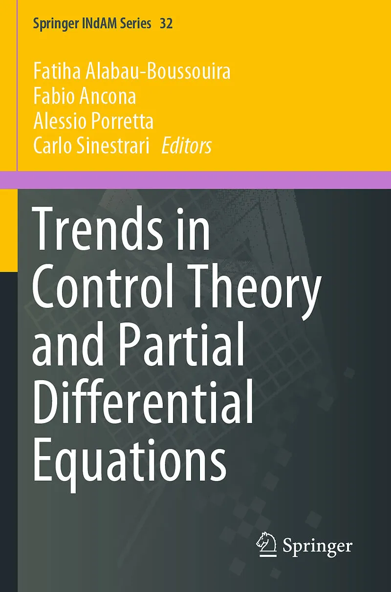 1 P. Albano, Some remarks on the Dirichlet problem for the degenerate eikonal equation.- 2 V. Basco and H. Frankowska, Lipschitz continuity of the value function for the infinite horizon optimal control problem under state constraints.- 3 P. Cannarsa et al., Herglotz' generalized variational principle and contact type Hamilton-Jacobi equations.- 4 P. Cannarsa et al., Observability inequalities for transport equations through Carleman estimates.- 5 I. Capuzzo Dolcetta, On the weak maximum principle for degenerate elliptic operators.- 6 P. Cardaliaguet, On the convergence of open loop Nash equilibria in mean field games with a local coupling.- 7 E. Fernández-Cara and D. A. Souza, Remarks on the control of a family of b-equations.- 8 G. Leugering et al., 1-d wave equations coupled via viscoelastic springs and masses: boundary controllability of a quasilinear and exponential stabilizability of a linear model.- 9 P. Loreti and D. Sforza, A semilinear integro-differential equation: global existence and hidden regularity.- 10 M. Mazzola and K. T. Nguyen, Lyapunov's theorem via Baire category.- 11 D. Pighin and E. Zuazua, Controllability under positivity constraints of multi-d wave equations.- 12 C. Pignotti and I. Reche Vallejo, Asymptotic analysis of a Cucker-Smale system with leadership and distributed delay.- 13 J. Vancostenoble, Global non-negative approximate controllability of parabolic equations with singular potentials.