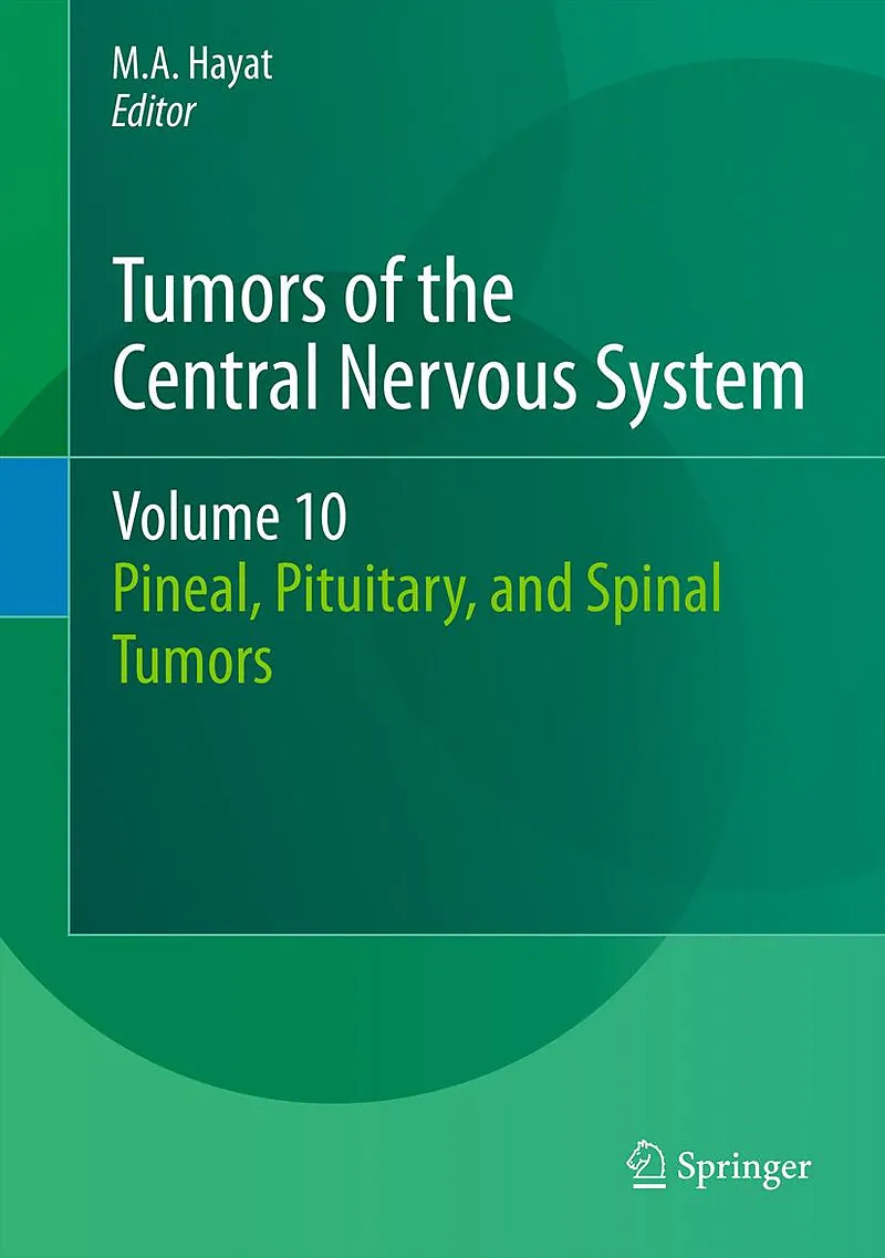 Preface. I. Pineal tumors.- Papillary tumor of the pineal region.- Pineal region tumors: clinical aspects.- Papillary tumor of the pineal region: diagnosis.- Pineal parenchymal tumors: immunohhistochemistry.- Pineal parenchymal tumors: diagnostics and prognosis.- Papillary tumors of the pineal region: diagnosis and treatment.- Pineal region tumors: optimal neurosurgical treatment.II. Pituitary tumors.- Pituitary tumors: genetics and heritable predisposition.- Xanthogranulomas associated with pituitary adenomas: magnetic resonance imaging.- Pituitary adenoma and craniopharyngioma: an overview.- Familial pituitary adenomas: an overview.- Papillary glioneuronal tumor.- Solitary fibrous tumor.- Pituitary adenomas: mcm2 protein as a cell proliferation marker.- Pituitary adenomas: role of cyclin-dependent kinase inhibitors.- Pituitary tumorigenesis: role of regulation of wee1 kinase by micrornas.- Pituitary tumor cells: role of pkc, pkc, and pck expression.- Pituitary adenoma: role of hmga proteins.- Pituitary adenomas: role of e-cadherin in tumor invasion.- Pituitary tumorigenesis: role of the wnt signaling pathway.- The role of aryl hydrocarbon receptor (ahr) and ahr-interacting Protein (aip) in the pathogenesis of pituitary adenomas.- Pituitary tumors: role of pituitary tumor- transforming gene-1 (pttg1).- Pituitary adenomas: endoscopic endonasal transphenoidal Technique.- Pituitary adenoma patients: hypofractionated cyberknife Radiosurgery (method).- Transspheniodal/transcranial surgery of pituitary adenomas: Prognosis-related occurrence for the trigemino-cardiac reflex. III. Spinal tumors.- Spinal extradural meningiomas.- Spinal cord ganglio glioma.- Spinal angiolipoma: diagnosis and treatment.- Spinal cord injury: tissue engineering using neural stem cells.- Pediatric spinal tumors: total removal using laminotomy.- Treatment of metastatic spinal epidural disease: surgery versus radiotherapy.- Metastatic spinal cord compression from synovial sarcoma:surgical resection.- Adult spinal intramedullary ependymomas: complete resection.- Spinal intramedullary astrocytomas: prognostic factors. Index.