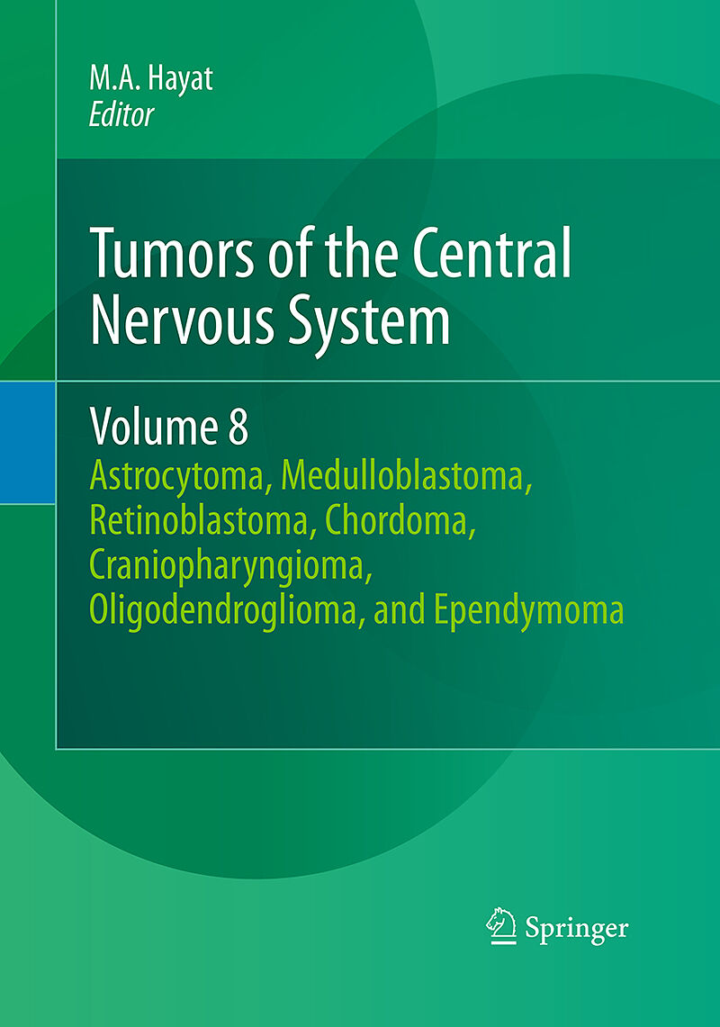 Preface. I Astrocytoma.-1. Astrocytoma cell line: role of brain natriuretic peptide.-2 Malignant brain astrocytomas: extent of resection affects survival. II Medulloblastoma.-3 Medulloblastoma: classification (a review).-4 Medulloblastomas: clinically important microrna genes.-5 Medulloblastoma: role of otx2 transcription factors.-6 Molecular mechanisms of chemoresistance in medulloblastoma.-7 Extraneural metastasis in medulloblastoma.-8 Medulloblastoma: therapy with bortezomib/tumor necrosis factor-related apoptosis-inducing ligand.-9 Standard-risk medulloblastoma: hyperfractionated radiotherapy.III Retinoblastoma.-10 Retinoma and retinoblastoma: genomic hybridisation.-11. cell cycle control by ataxia telangiectasia mutated protein through regulating retinoblastoma protein phosphorylation.-12. Role of survivin in retinoblastoma: diagnosis and prognosis.-13 Retinoblastoma: the role of epigenetics.-14 Retinoblastoma: disease, diagnosis, therapy and management.-15 Long-term survivors of retinoblastoma: risk of increased second malignancy.-16 New cancers among long-term survivors of retinoblastoma. IV chordoma.-17 Chordoma: role of cam5.2.-18 Chordomas and chondrosarcomas: treatment with particle radiotherapy.-19 Skull base chordomas: endonasal endoscopic transclival approach. V Craniopharyngioma.-20 Craniopharyngioma: comparison between supra-orbital versus endonasal keyhole approaches.-21 The expanded endoscopic endonasal approach for primary and recurrent craniopharyngiomas.-22 Craniopharyngioma: the role of radiation.-23. cystic craniopharyngiomas: intratumoral bleomycin therapy. VI Oligodendroglioma.-24 Anaplastic oligodendroglioma metastasized to extraneural sites.-25 Recurrent oligodendroglioma: treatment with bevacizumab. VII Ependymoma.-26 Ependymoma: an overview.-27 Ependymomas: prognosis based on genetic aberrations.-28 Aberrant dna methylation in ependymomas.-29 Progressively metastasizing ependymoma: genomic aberrations.-30 Extradural ependymoma: diagnosis using magnetic resonance imaging.-31 Primary malignant ependymoma of the abdominal cavity: diagnosis.-32 Atypical histologic features and patterns of malignant evolution in tanycytic ependymoma.-33 Intracranial ependymoma: role for chemotherapy. Index.