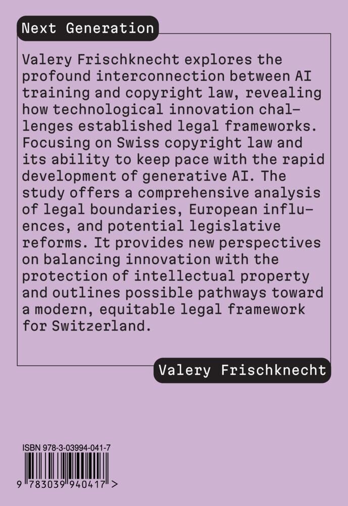Valery Frischknecht explores the profound interconnection between AI training and copyright law, revealing how technological innovation challenges established legal frameworks. Focusing on Swiss copyright law and its ability to keep pace with the rapid develop...