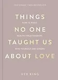 Things No One Taught Us About Love is a concise paperback which distils the ideas found in Vex King''s Closer to Love , reworked and presented in the warm, relatable style of his No. 1 bestseller Good Vibes, Good, Life. So often, we expect romantic love to sol...Things No One Taught Us About Love is a concise paperback which distils the ideas found in Vex King''s Closer to Love , reworked and presented in the warm, relatable style of his No. 1 bestseller Good Vibes, Good, Life. So often, we expect romantic love to solve our problems and validate our worth. We become frustrated when partners can''t meet our idealised needs and impossible demands. Broken dreams of life-long romance can leave us feeling incomplete, like failures, hopping from one relationship to the next, until we feel whole again. But it''s no wonder we struggle, given that we have never been shown the true nature of love. We''ve been misled into thinking love is external, somewhere out there, rather than a force within us. In Things No One Taught Us About Love , Vex King, bestselling author of Good Vibes, Good Life dismantles the myths and preconceptions surrounding love and relationships and sets out how to:Develop authentic self-loveCultivate healthy bondsUnderstand the realities of relationshipsLet go with graceWith a clear understanding of what love truly is, you can transform your relationships, deepen connections, and find the real love you seek.
