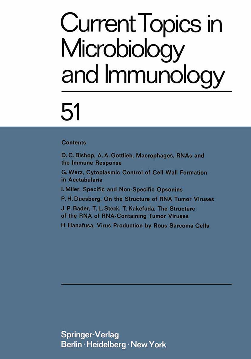 Inhalt Macrophages, RNAs and the Immune Response.- Cytoplasmic Control of Cell Wall Formation in Acetabularia.- Specific and Non-Specific Opsonins.- On the Structure of RNA Tumor Viruses.- The Structure of the RNA of RNA-Containing Tumor Viruses.- Virus Produc...