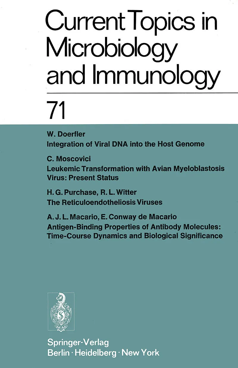 Inhalt Integration of Viral DNA into the Host Genome.- Leukemic Transformation with Avian Myeloblastosis Virus: Present Status.- The Reticuloendotheliosis Viruses.- Antigen-Binding Properties of Antibody Molecules: Time-Course Dynamics and Biological Significa...