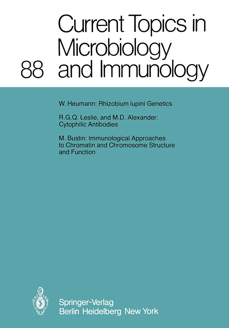InhaltRhizobium lupini Genetics.- Cytophilic Antibodies.- Immunological Approaches to Chromatin and Chromosome Structure and Function.- Indexed in Current Contents.