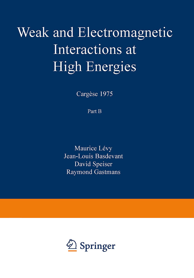 The Cargese Summer Institute 1975 on Weak and EZeotromagnetio Interaotions at High Energies was organized by the Universite Pierre et Marie Curie (M. LEVY et J. L. BASDEVANT)~ the KathoZieke Universiteit te Leuven (R. GASTMANS) and the Universite CathoZique de...The Cargese Summer Institute 1975 on Weak and EZeotromagnetio Interaotions at High Energies was organized by the Universite Pierre et Marie Curie (M. LEVY et J. L. BASDEVANT)~ the KathoZieke Universiteit te Leuven (R. GASTMANS) and the Universite CathoZique de Louvain (D. SPEISER~ J. WEYERS) who made in 1973 the first oon taots with some Zeoturers~ who~ on the advioe of NATO joined their efforts and worked in oommon. It was the 16th Summer Institute rd heZd at Cargese and the 3 one organized by the two departments of TheoreticaZ Physios at Leuven and Louvain-Za-Neuve. When the two groups decided (independentZy) on the subjeot of the sohooZ~ they oouZd not know how Zuoky their ohoioe eventuaZZy wouZd turn out to be : rareZy has it being possibZe to present an audienoe with suoh a great number of new and deoisive disooveries who are Zikely to stimuZate the imagination of theoreticians and the researoh projeots of experimentaZists aZike. Suoh were the decisive oonfirmation of the neutraZ ourrents~ the di-muon events~ the sZowZy deoaying new partioZes~ eto. The organizers were grate JUZ indeed that they oouZd find physioists from aZmost alZ great oenters of high energy physios Who had themseZves participated in these disooveries. AZthough the theorists oouZd not matoh during the Zast two years the speotaouZar suooess of their experimentaZ ooZZeagues~ there has been enough important program~ especiaZZy in fieZd theory : renormaZization of gauge theories~ the mechanism disoovered by R. BROUT et aZ. ~ eto.