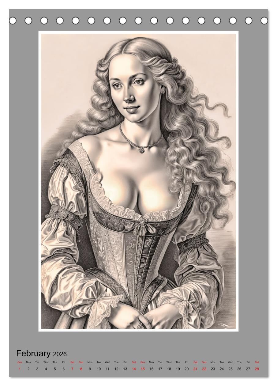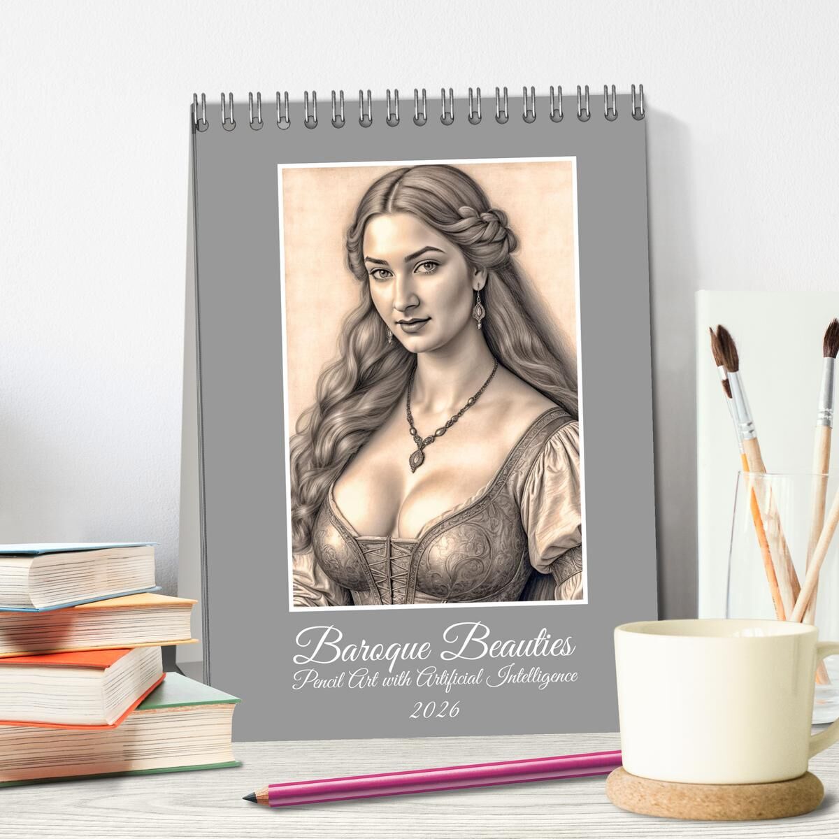 Baroque Beauties, Pencil Art with Artificial Intelligence (Desk Calendar 2026 DIN A5 portrait), CALVENDO 12 Month DeskCalendar