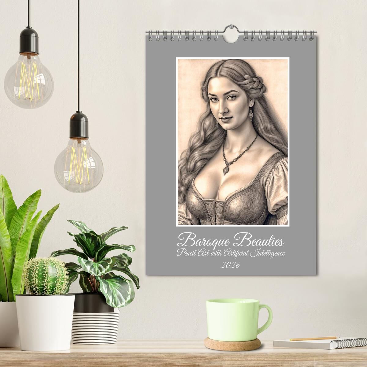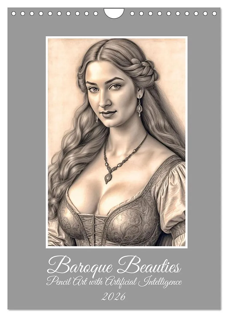 Baroque Beauties, Pencil Art with Artificial Intelligence (Wall Calendar 2026 DIN A4 portrait), CALVENDO 12 Month Wall Calendar