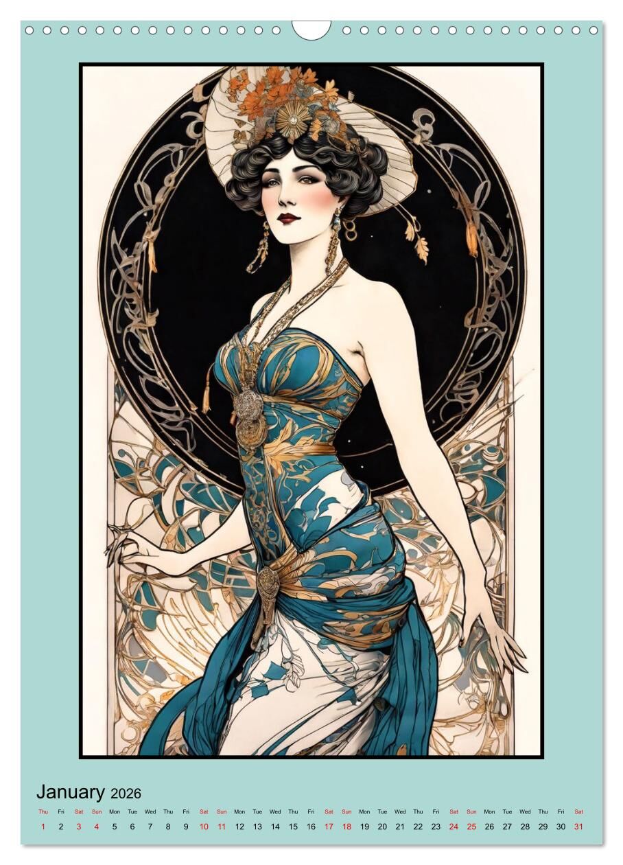 Our calendar showcases depictions of women as they emerged during the Belle Époque, towards the end of the nineteenth century. These are primarily subjects of applied art, as commonly seen in posters, event announcements, and similar illustrations. They expres...