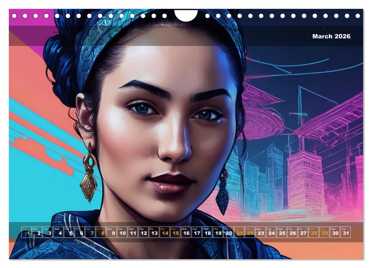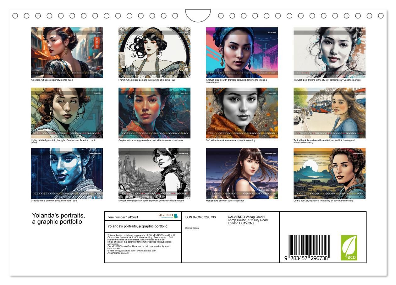 Immerse yourself in the captivating world of Yolanda, a muse crafted by artificial intelligence, who presents herself in twelve stunning art styles within this unique calendar. From the elegance of Art Deco to the drama of Japanese ink wash drawings, from the ...