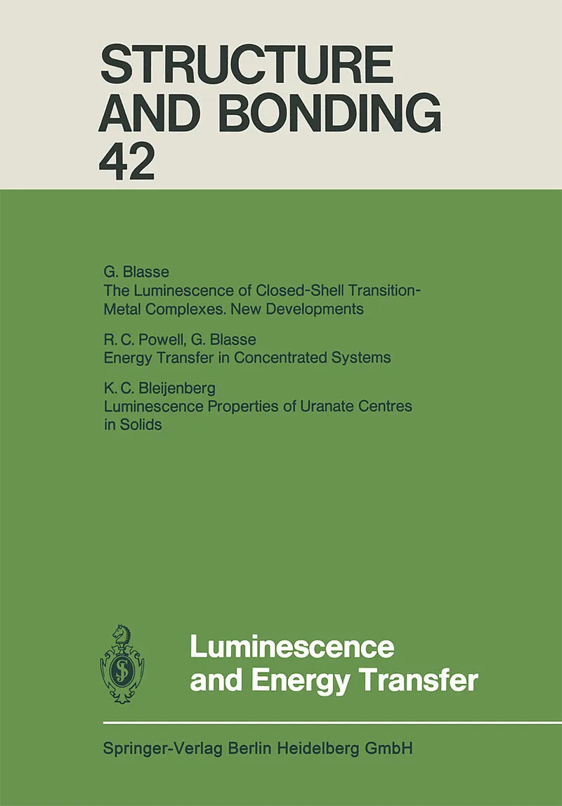 InhaltThe luminescence of closed-shell transition-metal complexes. New developments.- Energy transfer in concentrated systems.- Luminescence properties of uranate centres in solids.