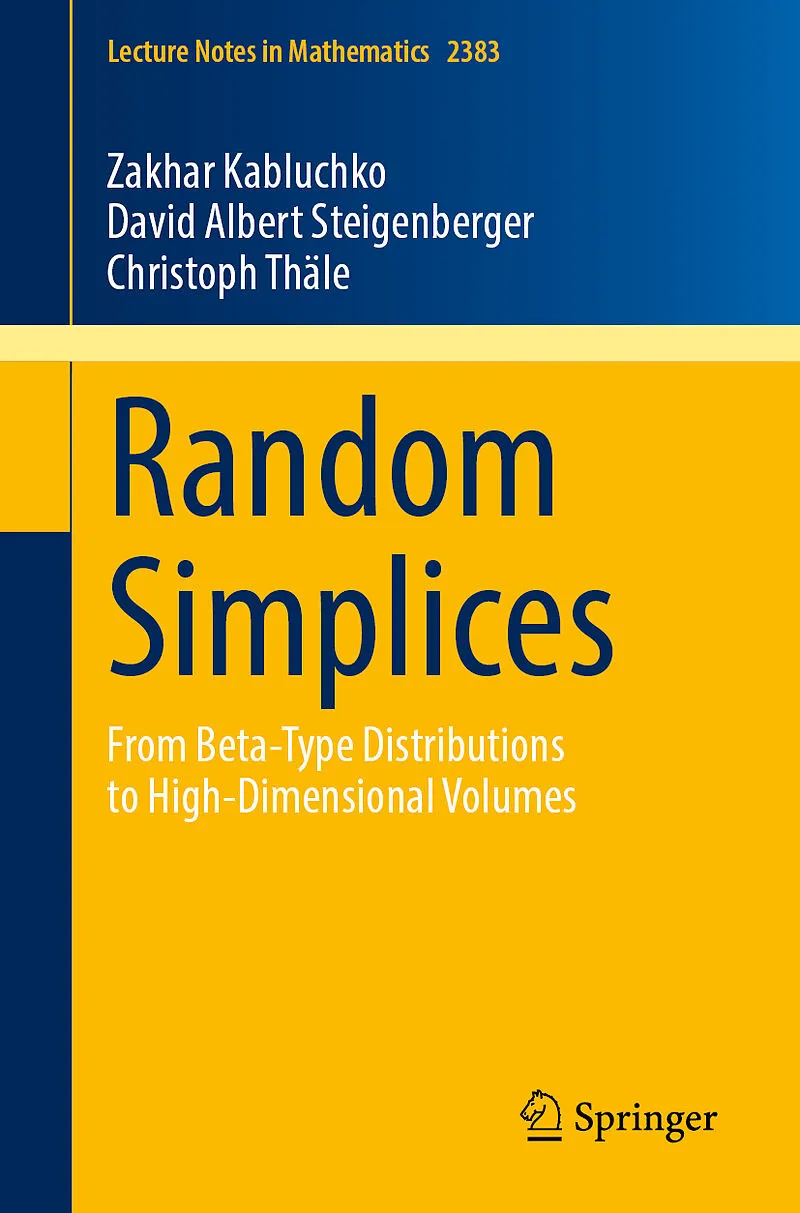 This book provides an introduction to the theory of random beta-type simplices and polytopes, exploring their connections to key research areas in stochastic and convex geometry. The random points defining the beta-type simplices, a class of random simplices ...This book provides an introduction to the theory of random beta-type simplices and polytopes, exploring their connections to key research areas in stochastic and convex geometry. The random points defining the beta-type simplices, a class of random simplices introduced by Ruben and Miles, follow beta, beta-prime, or Gaussian distributions in the Euclidean space, and need not be identically distributed. A key tool in the analysis of these simplices, the so-called canonical decomposition, is presented here in a generalized form and is employed to derive explicit formulas for the moments of the volumes of beta-type simplices and to prove distributional representations for these volumes. Three independent approaches are described, including the original RubenMiles method. In addition, a version of the canonical decomposition for beta-type polytopes is provided, characterizing their typical faces as volume-weighted beta-type simplices. This is then applied to compute various expected functionals of beta-type polytopes, such as their volume, surface area and number of facets. The formulas for the moments of the volumes are also used to investigate several high-dimensional phenomena. Among these, a central limit theorem is established for the logarithmic volume of beta-type simplices in the high-dimensional limit. The canonical decomposition further motivates the study of beta-type distributions on affine Grassmannians, a subject to which the last chapter is dedicated.