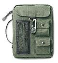 Zusammenfassung Ready for an adventure! this extra-large Bible cover has plenty of secure snap pockets for all your needs. Made of olive green rip-stop material with a sturdy carrying handle and durable zipper pulls! this Bible case will protect your Bible and...
