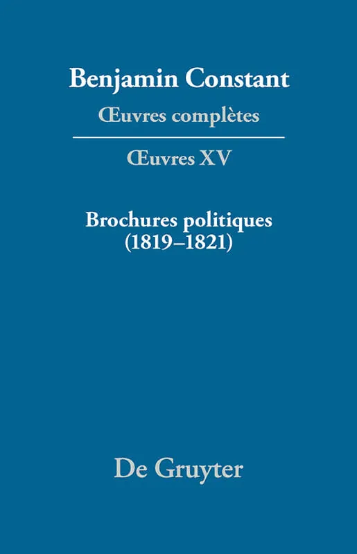 Volume XV presents political texts written by Constant between 1819 and 1821, a period characterized by the success of the liberal party and the great domestic crisis in France caused by the assassination of the Duke of Berry. Constant's writings react to the...