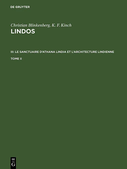 Frontmatter -- TOME II -- Chap. VII. Autres édifices et monuments sur l'Acropole -- Chap. VIII. Les citernes à l'Acropole -- Chap. IX. Le péribolos de l'Acropole -- Chap. X. Le Théâtre cultuel de Lindos -- Chap. XI. Le Tetrastoon près du Théâtre -- Chap. XII. ...