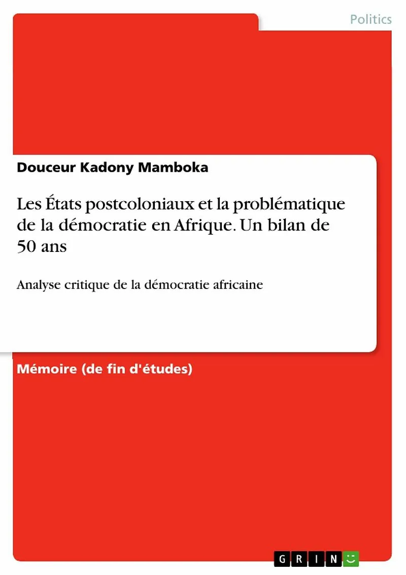 Mémoire (de fin d'études) de l'année 2013 dans le domaine Politique - Région: Afrique, , cours: Relations Internationales Africaines, langue: français, résumé: Cette analyse critique s'intéresse aux &eacu...
