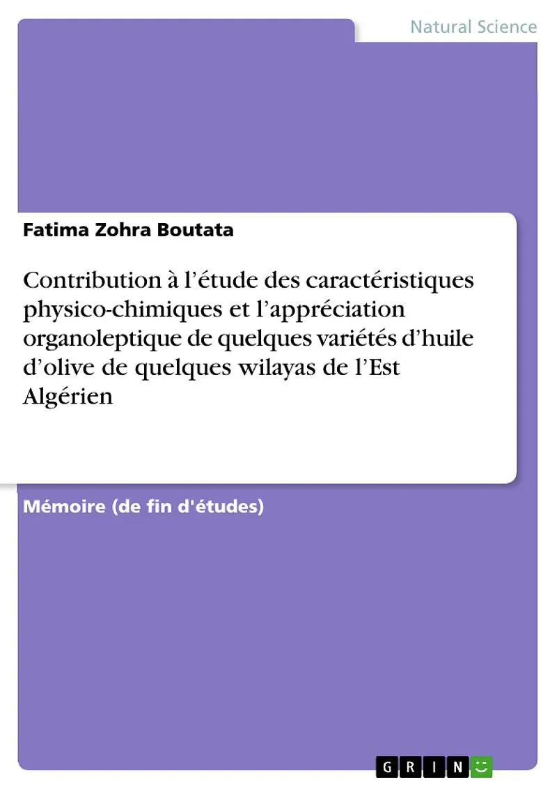 Contribution à l'étude des caractéristiques physico-chimiques et l'appréciation organoleptique de quelques variétés d'huile d'olive de quelques wilayas de l'Est Algérien