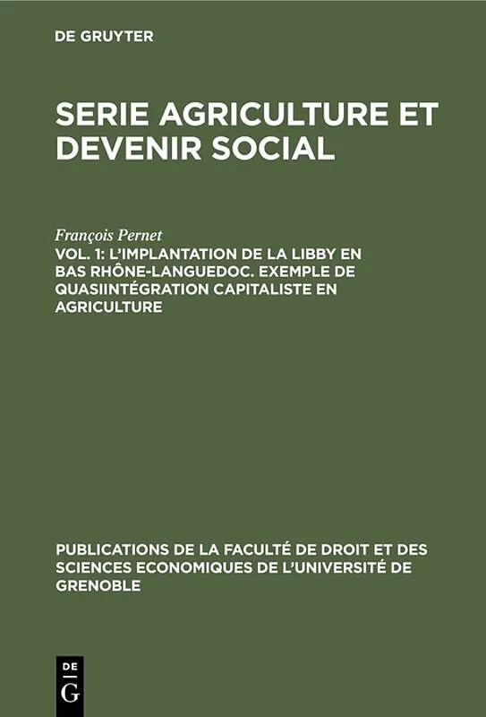 Dieser Titel, "L'implantation de la Libby en Bas Rhône-Languedoc. Exemple de Quasiintégration capitaliste en agriculture", ist eine wissenschaftliche Publikation, erschienen bei De Gruyter Brill. Ausführliche Beschreibung, Inhaltsverzeichnis und weitere Angabe...