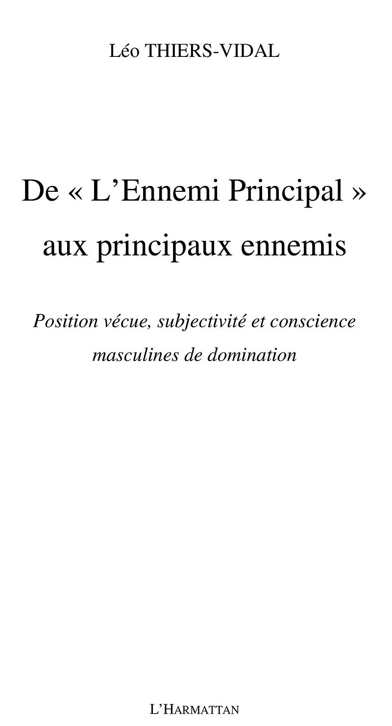 Klappentext Le grand projet de Leo Vidal est de contribuer a decouvrir un territoire qui n'a que commence a etre dechifre dans les etudes feministes : l'etude des hommes non en tant qu'etres humains, mais en tant qu'individus genres. En prenant pour base les t...