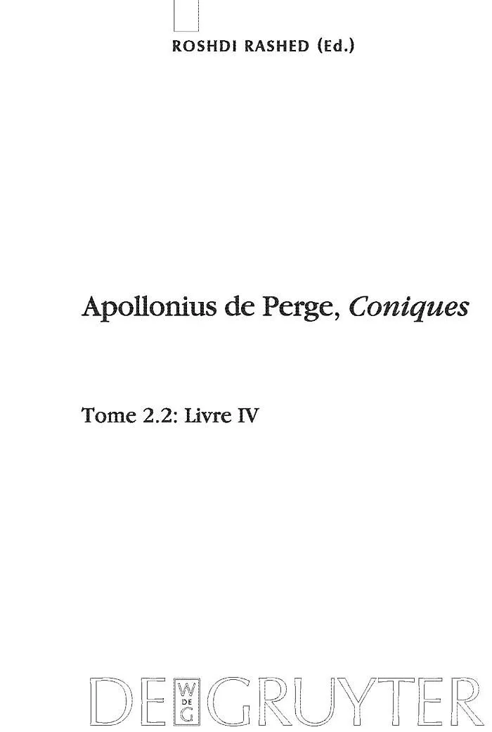 Book IV of the Konika consists of two parts; the first presents a theory of poles and polars, the second deals with the number of intersections and points of contact in a conic section. Previously the book was only extant as the very unreliable text of a Gree...
