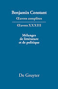 This volume contains the Mélanges de littérature et de politique, published by Constant in 1829, one year before his death. This work, composed of 20 chapters, has often been considered to be his testament, or at least a representative overview of 40 years of...