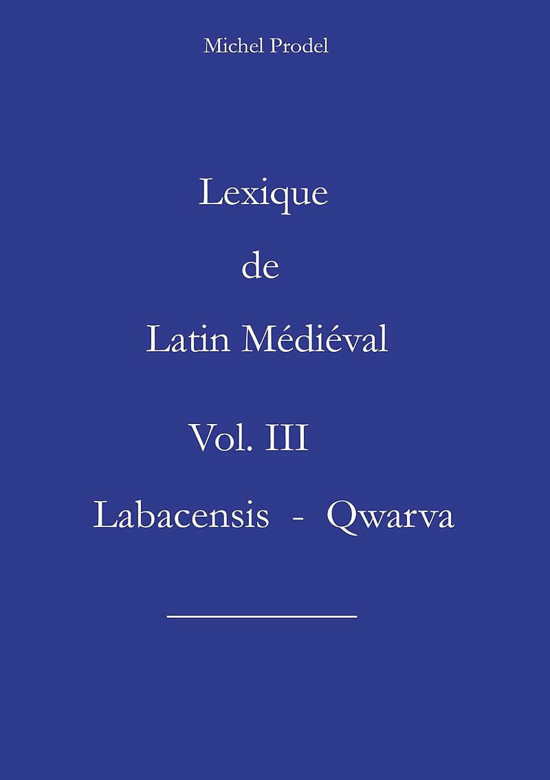 lexique de latin médiéval - vol 3 - couvrant les temes des lettres L à Q. Ingénieur de formation, Michel Prodel a déja publé les ouvrages suivants: - Contribution à la toponymie de la Corrèze (2020, BOD &...