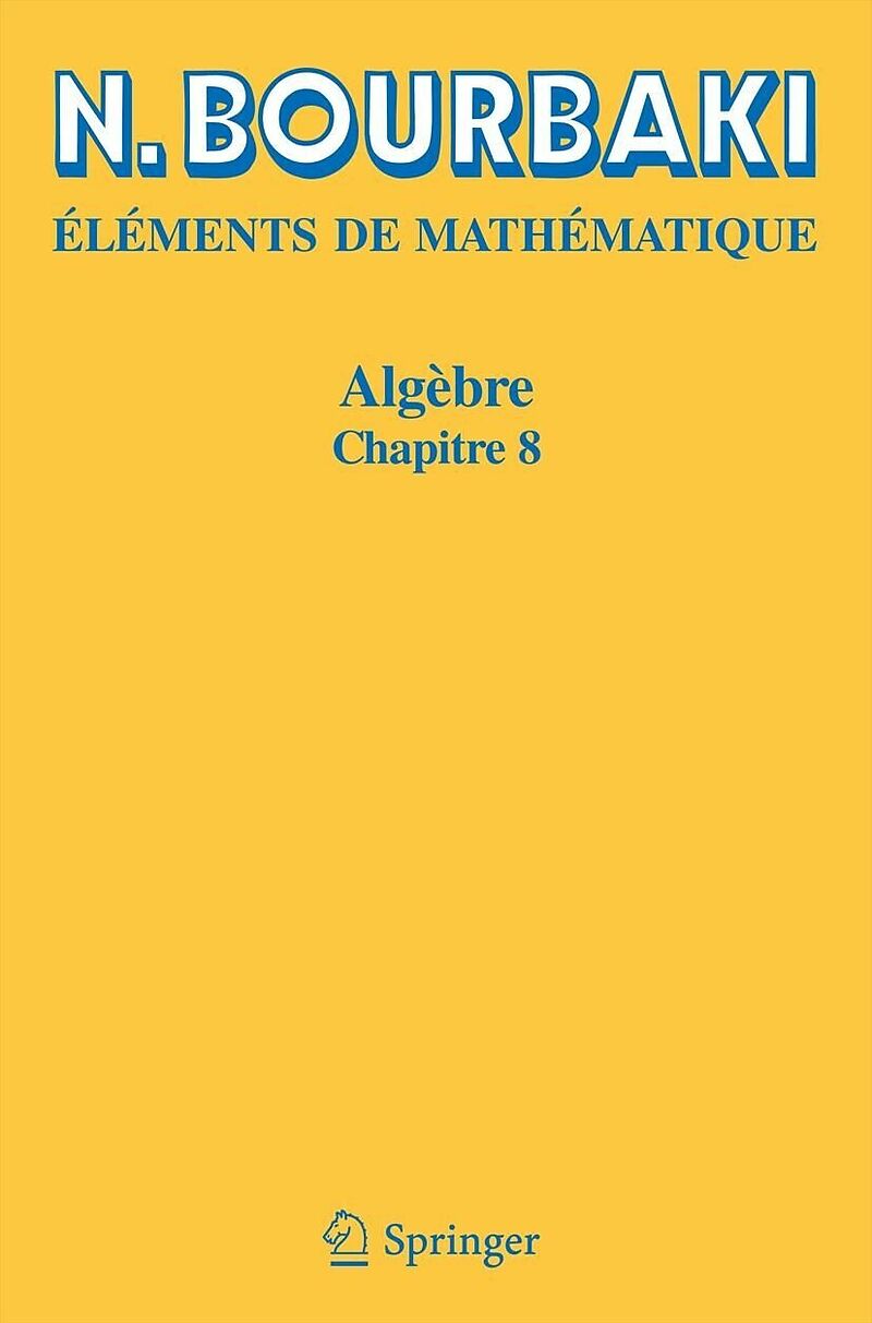 Ce huitième chapitre du Livre d'Algèbre, deuxième Livre des Éléments de mathématique, est consacré à l'étude de certaines classes d'anneaux et des modules sur ces anneaux. Il couvre les notions de module et d'anneau noethérien et artinien, ainsi que celle de ...