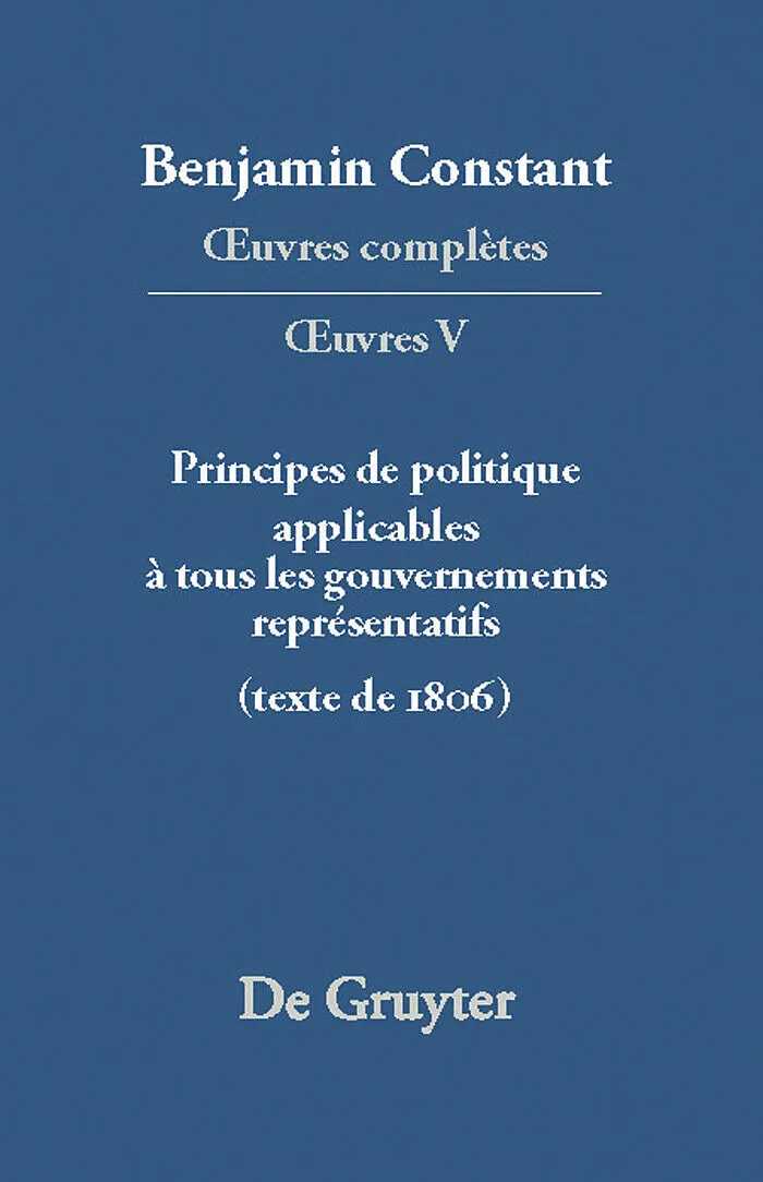 This volume makes accessible Benjamin Constant's major political treatise, which was the basis for his political actions and the development of his political writings. His Principes de politique became one of the decisive starting points of European liberalis...