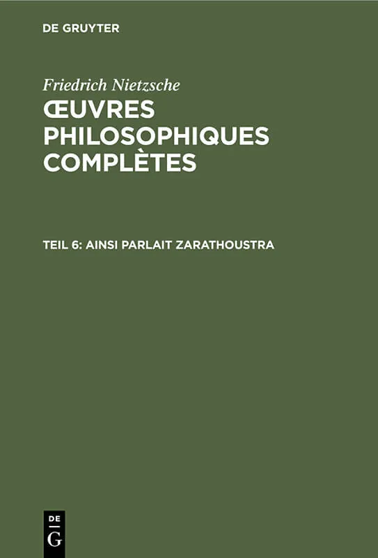 Frontmatter -- NOTE DES ÉDITEURS -- NOTE DU TRADUCTEUR -- Première partie -- Deuxième partie -- Troisième partie -- Quatrième et dernière partie -- Dates et événements de la vie de Nietzsche -- Les Manuscrits -- Notes Et Variantes -- Table -- Backmatter