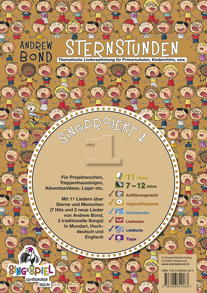 Für Projektwochen, Treppenhaussingen, Adventsanlässe, Lager etc. Mit 11 Liedern über Sterne und Menschen (sieben Hits und zwei neue Lieder von Andrew Bond, zwei traditionelle Songs) In Mundart, Hochdeutsch und Englisch