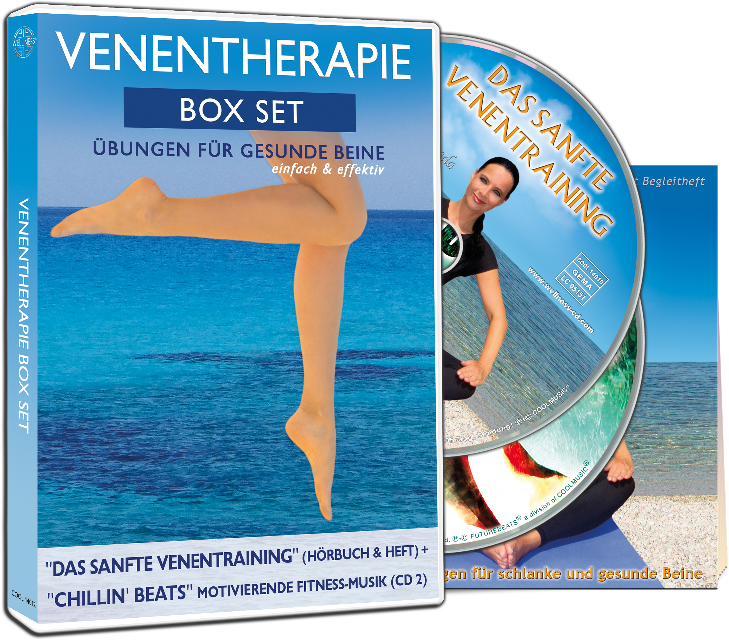 Das Venentherapie Box Set enthält die Anleitungs-CD "Das sanfte Venentraining" von Canda und ein farbiges Begleitheft im praktischen Taschenformat sowie die Fitness Musik-CD "Chillin' Beats" von Future Beats. Gesunde Venen sind die Vor...
