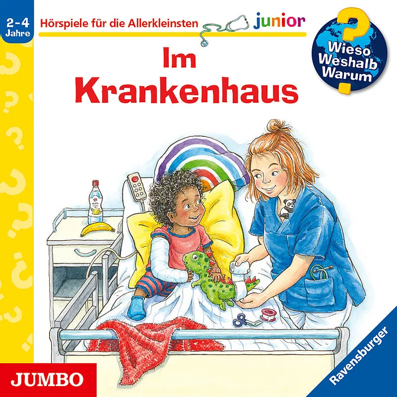 Schon kleine Kinder müssen mal ins Krankenhaus ob als Patientin oder Besucherin. In diesem Hörspiel begleiten die Hörerinnen David, der sich den Ellenbogen gebrochen hat. In der Notaufnahme wird er untersucht und sein Arm geröntgt. Zum Glück ist Papa dabei und...