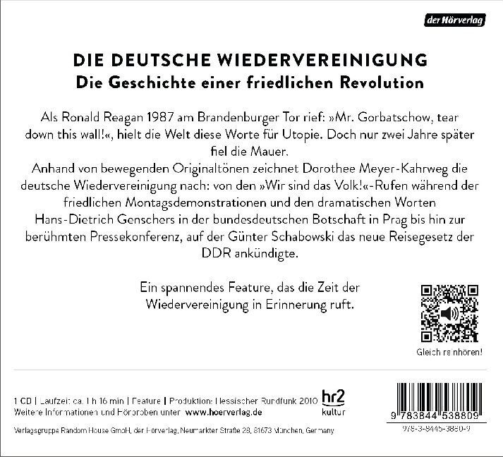 Die deutsche Wiedervereinigung in Originalaufnahmen Als Ronald Reagan 1987 am Brandenburger Tor rief: »Mr. Gorbatschow, tear down this wall!«, hielt die Welt diese Worte für Utopie. Doch nur zwei Jahre später fiel die Mauer. Anhand von bewegenden Originalaufna...