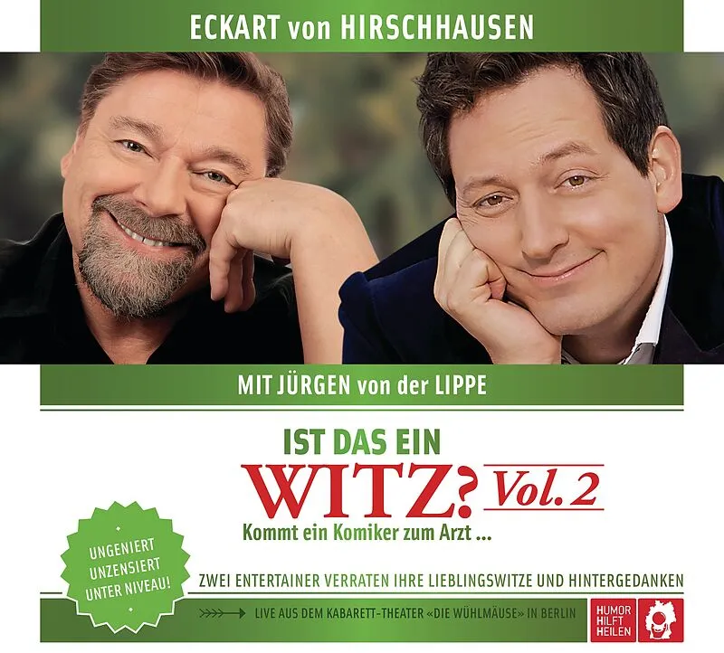 Der neue Hörbuch-Bestseller Nach dem Bestsellererfolg des Formates "Ist das ein Witz?" mit Hellmuth Karasek begegnet Eckart von Hirschhausen jetzt einem weiteren begnadeten Witzeerzähler und Humorfacharbeiter: Jürgen von der Lippe! Jürgen von der Lippe als bek...| 1 | Kommt ein Komiker zum Arzt... | 04:57 | |