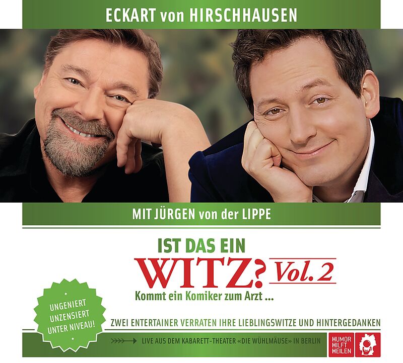 Der neue Hörbuch-Bestseller Nach dem Bestsellererfolg des Formates "Ist das ein Witz?" mit Hellmuth Karasek begegnet Eckart von Hirschhausen jetzt einem weiteren begnadeten Witzeerzähler und Humorfacharbeiter: Jürgen von der Lippe! Jürgen von der Lippe als bek...| 1 | Kommt ein Komiker zum Arzt... | 04:57 | |