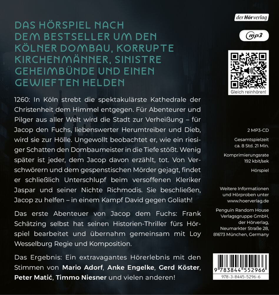 Das Hörspiel nach dem Bestseller um den Kölner Dombau, korrupte Kirchenmänner und einen gewieften Helden, von Frank Schätzing selbst inszeniert 1260: In Köln strebt die spektakulärste Kathedrale der Christenheit dem Himmel entgegen. Glanz und Bedeutung wachsen...