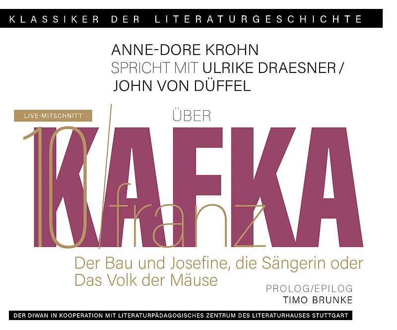 Klassiker der Literaturgeschichte Ulrike Draesner und John von Düffel sprechen über zwei Werke von Franz Kafka Der Bau und Josefine, die Sängerin oder Das Volk der Mäuse 2024 jährt sich der 100. Todestag von Franz Kafka, einem der weltweit meistgelesenen Schri...