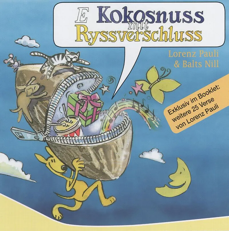 Pauli hat eine Kokosnuss ausgebrütet. Er erzählt die besten Verse aus dem Buch 'E Kokosnuss mit Ryssverschluss'. Endlich tönt der Berner Humor in Reimen durchs Kinderzimmer. Balts Nill (ehem. Stiller Has) und Lorenz Pauli haben sich bei diesem Projekt prima am...