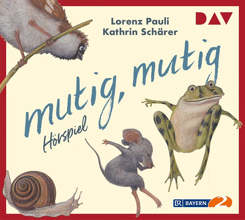 Maus, Schnecke, Spatz und Frosch haben die Idee für ein Wettspiel. Wer wohl der Mutigste ist? Wenn die Maus eine lange Strecke taucht, findet der Frosch das keineswegs mutig. Und wenn der Frosch Grünzeug frisst, ist das für die Schnecke nur köstlich, nicht mut...| 1 | Mutig, mutig | 03:27 | |