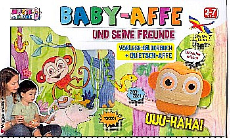 Diese liebevoll illustrierte Geschichte erzählt von Baby-Affe und seinen Freunden im Dschungel. Kinder können mit der Schlange zischen, mit dem Elefanten tröten oder mit dem Papagei fliegen. Wenn Baby-Affe nach seiner Mama ruft, kann durch Drücken auf die Äffc...
